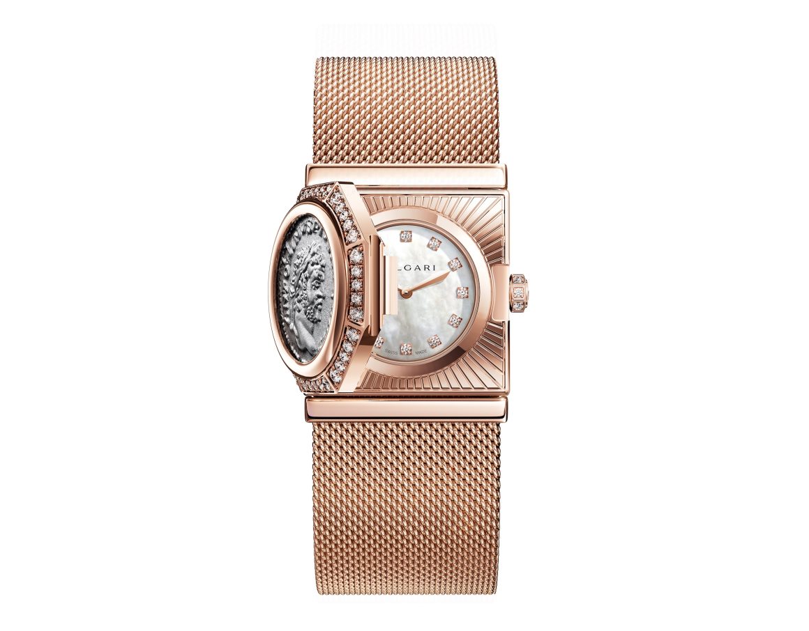 Bvlgari, saatçilik ve mücevher mirasını iki çarpıcı modelle yeniden yorumluyor. Maglia Milanese Monete, Rönesans döneminde Milano’da geliştirilen Milanese mesh tekniğini pembe altın Monete gizli saatle buluşturuyor. Antik sikke detayı, sekizgen form ve esnek örgü bileziğin kusursuz uyumu, modeli zaman ve sanatın kesişim noktasına taşıyor.