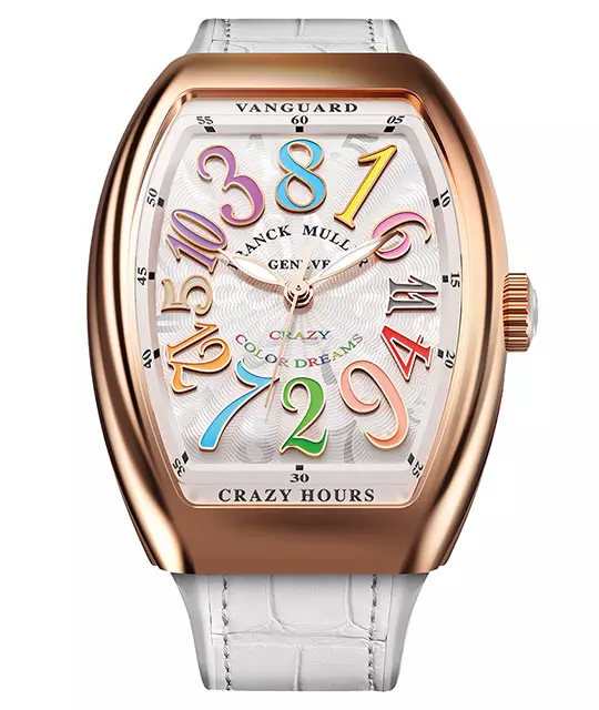 Franck Muller’in Color Dreams koleksiyonu, renkli rakam estetiğini marka DNA’sına dönüştüren en güçlü örneklerden biri. Burada renk, tüm kadranı kaplayan bir fon değil; her biri ayrı tonlarda tasarlanmış Arap rakamlarında hayat bulur.